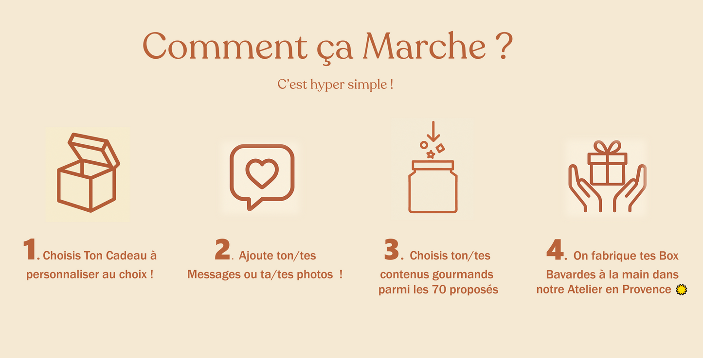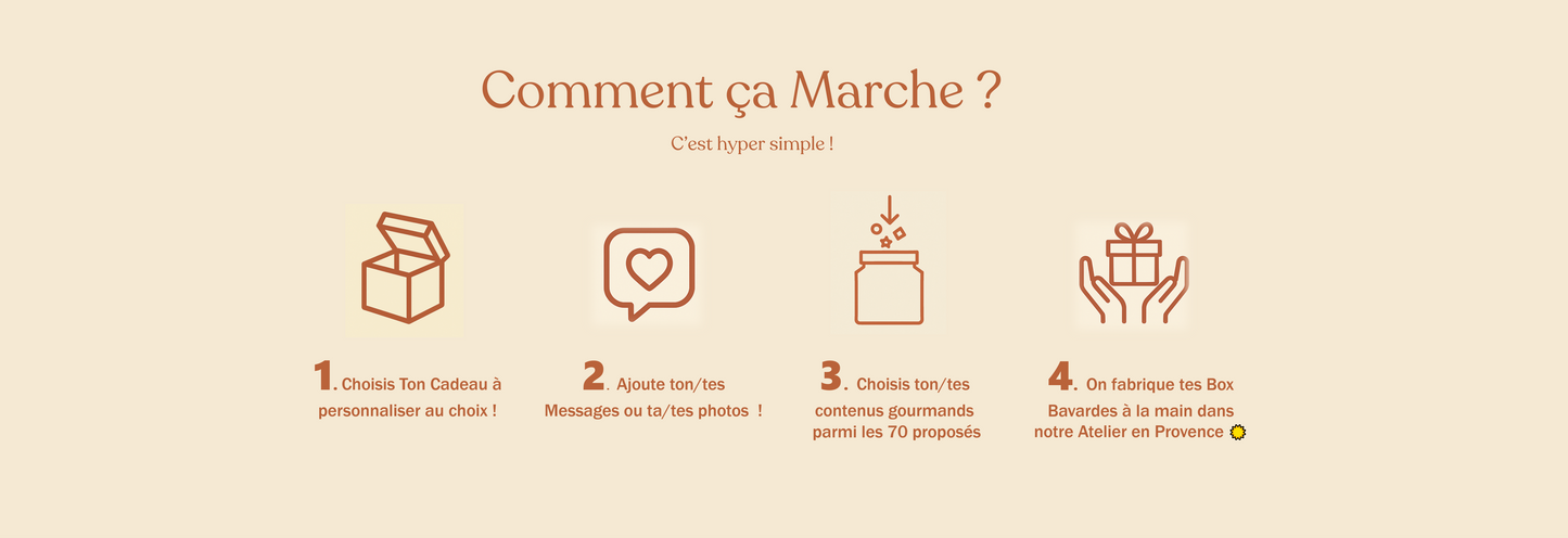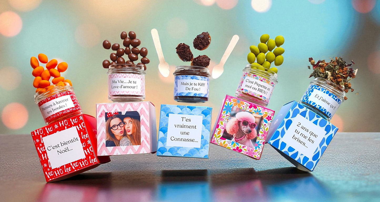 Personnalise ton Petit Pot ou Ta Box Bavarde avec tes messages, tes photos et nos Gourmandises Artisanales !
